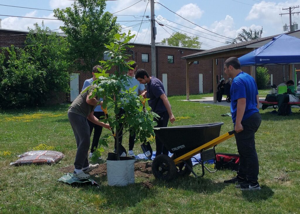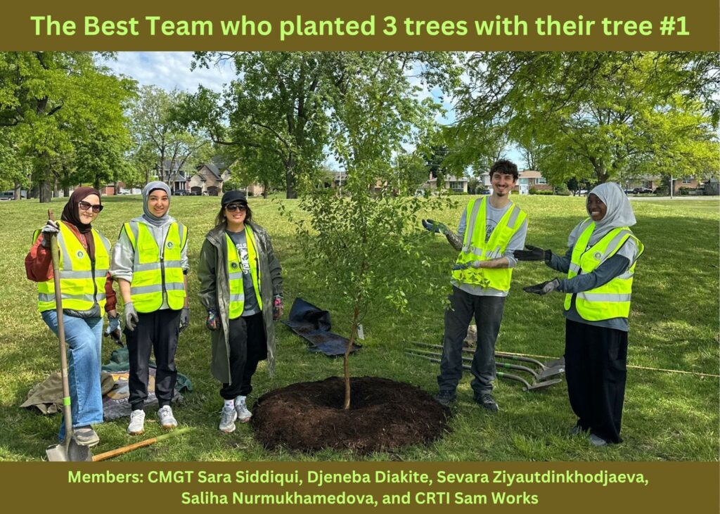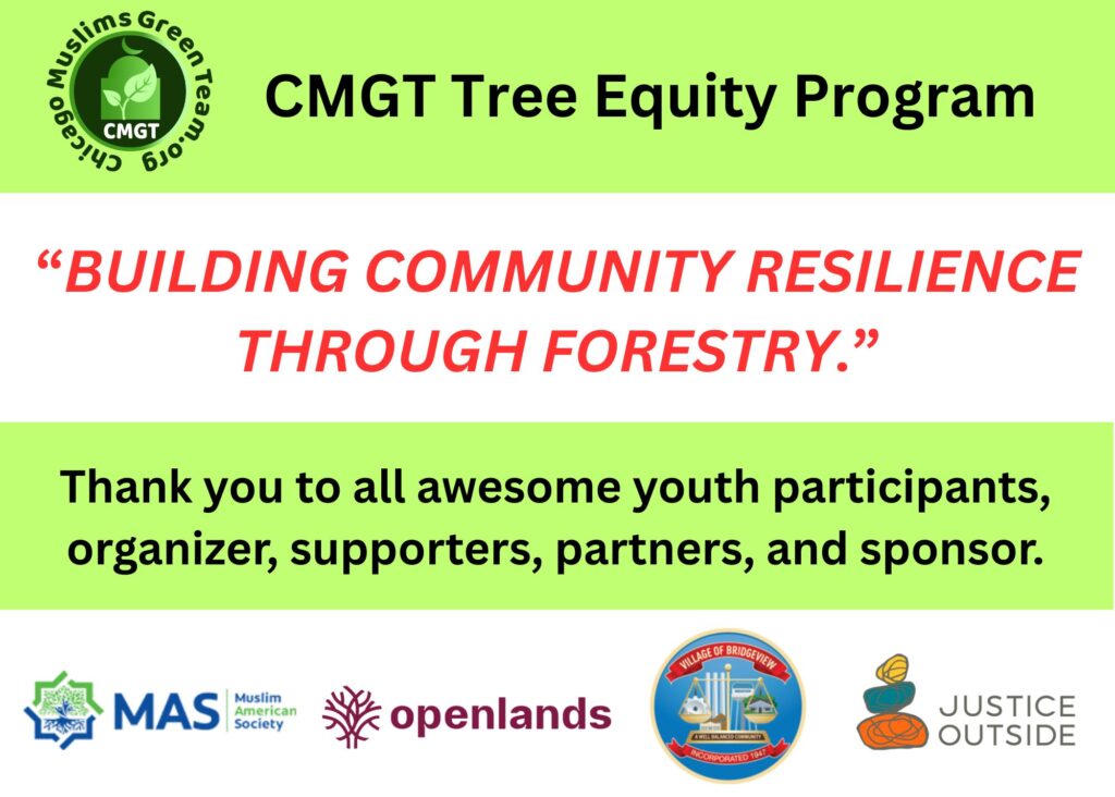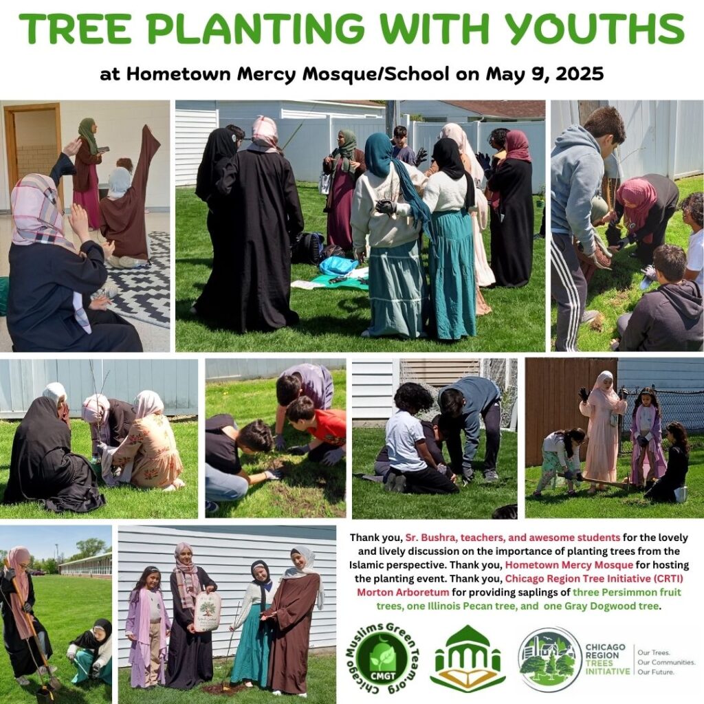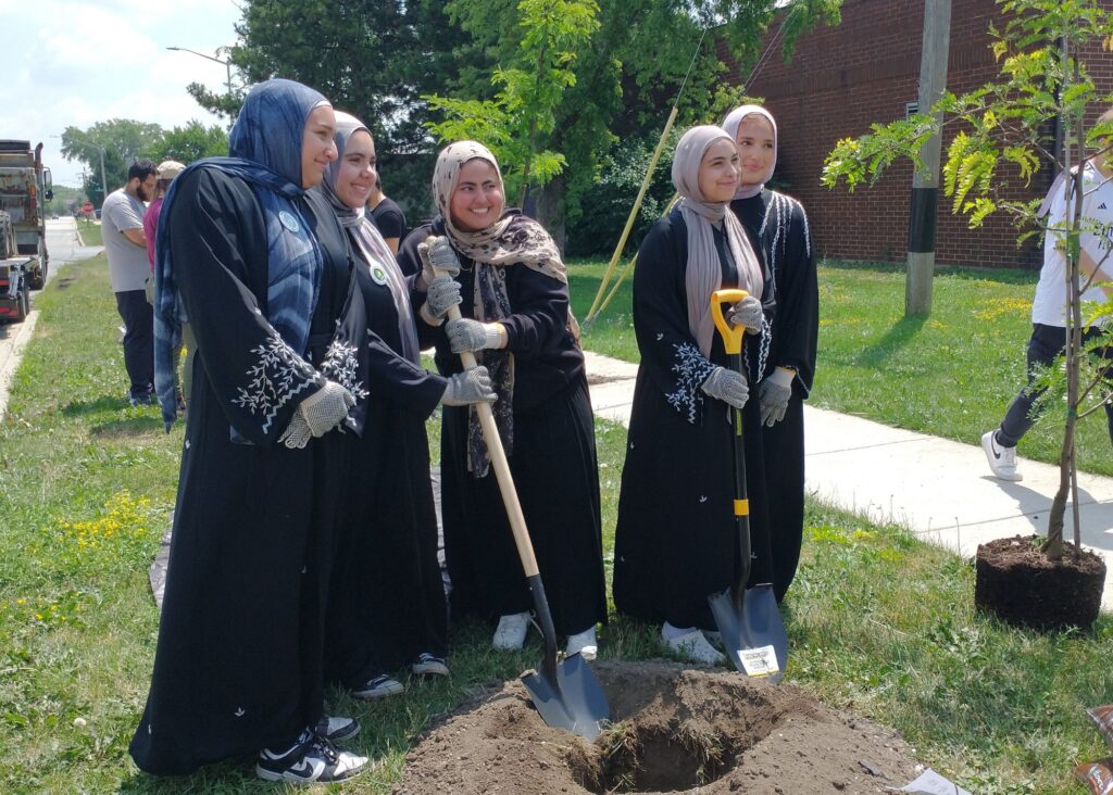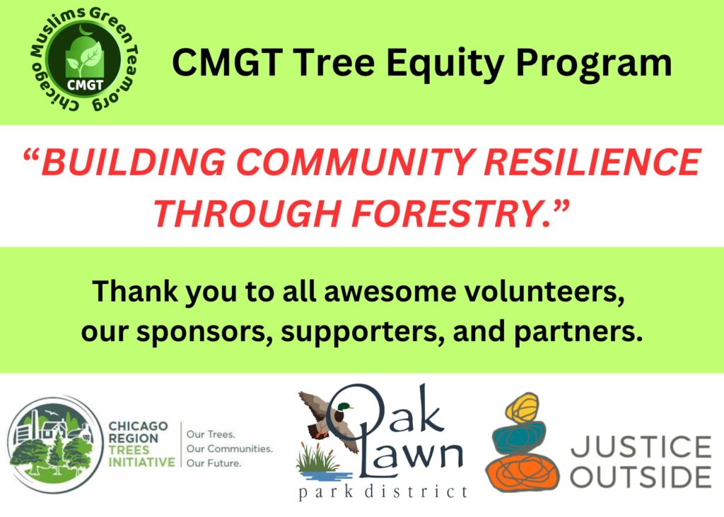 5 native trees planted at the Hometown Mercy Mosque/School, Hometown, IL in partnership with and support from Hometown Mercy Mosque and Chicago Region Tree Initiative, Morton Arboretum.