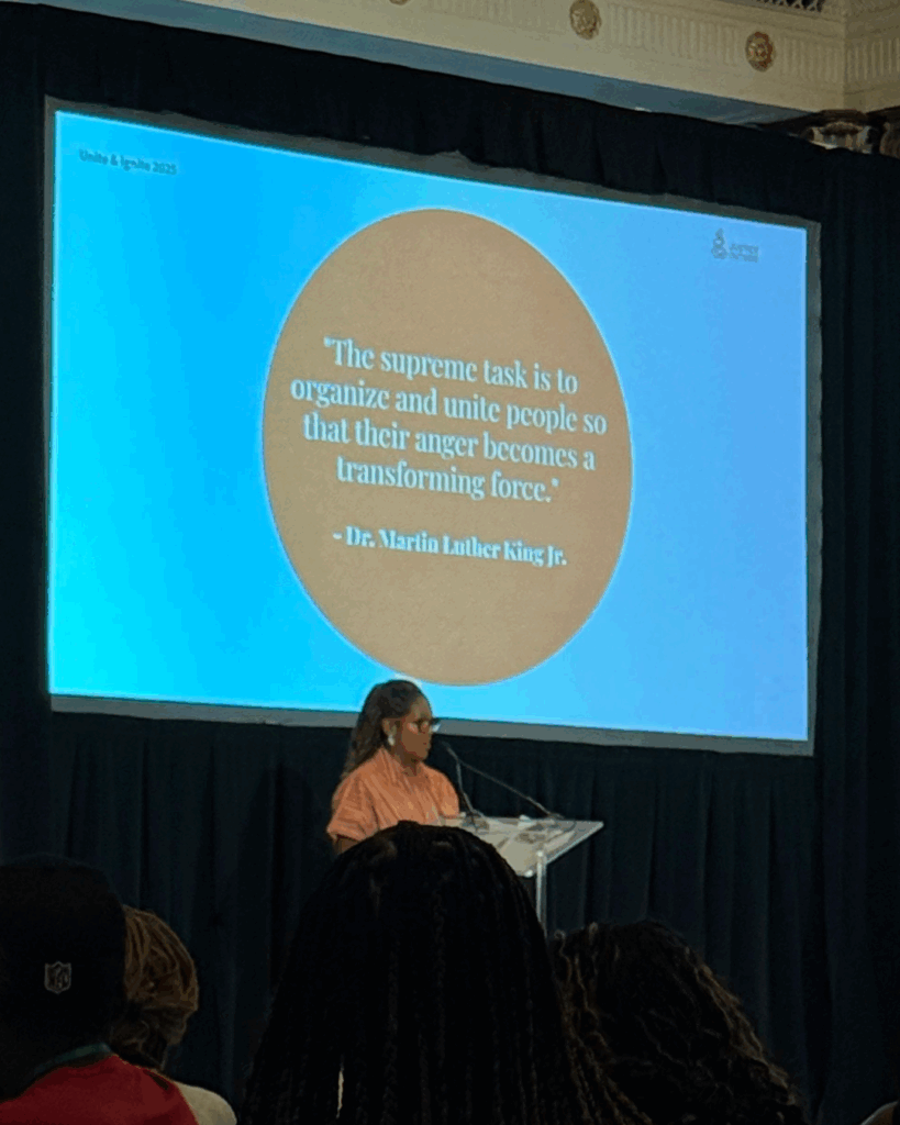 In this fun, interactive workshop led by Teria Powell from Building Bridges in Washington, D.C., we explored how culturally rooted festivals can be powerful tools for environmental justice, healing, and land connection, using case studies from Washington, D.C. During the workshop, we literally had to get up from our chairs, connect with another participant, and write a letter to our colleague about one thing we will do in the next 30 days to move our work forward. The letter will be sent to our addresses via snail mail, not electronic mail.