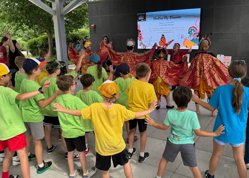 After the presentation, attendees enjoyed beautiful Butterfly Dance and a traditional Peacock Dance performed by youths trained by Ms. Dyah Sintorukmi Minarno. The dancers wore beautiful traditional colorful costumes with wings and crown or antenna shaped like the animals. They showed delicate hand and body movements inspired by the behavior of butterfly and peacock in nature through the interpretation of unique Indonesian culture. The Peacock Dance was accompanied by a soft and shooting music produced with a traditional percussion called Gamelan. The Butterfly Dance was accompanied by a children classic song about butterfly. Ms. Dyah also led attendees to participate in the Butterfly Dance, mimicking how butterfly moves and flies around. It was truly an amazing experience.